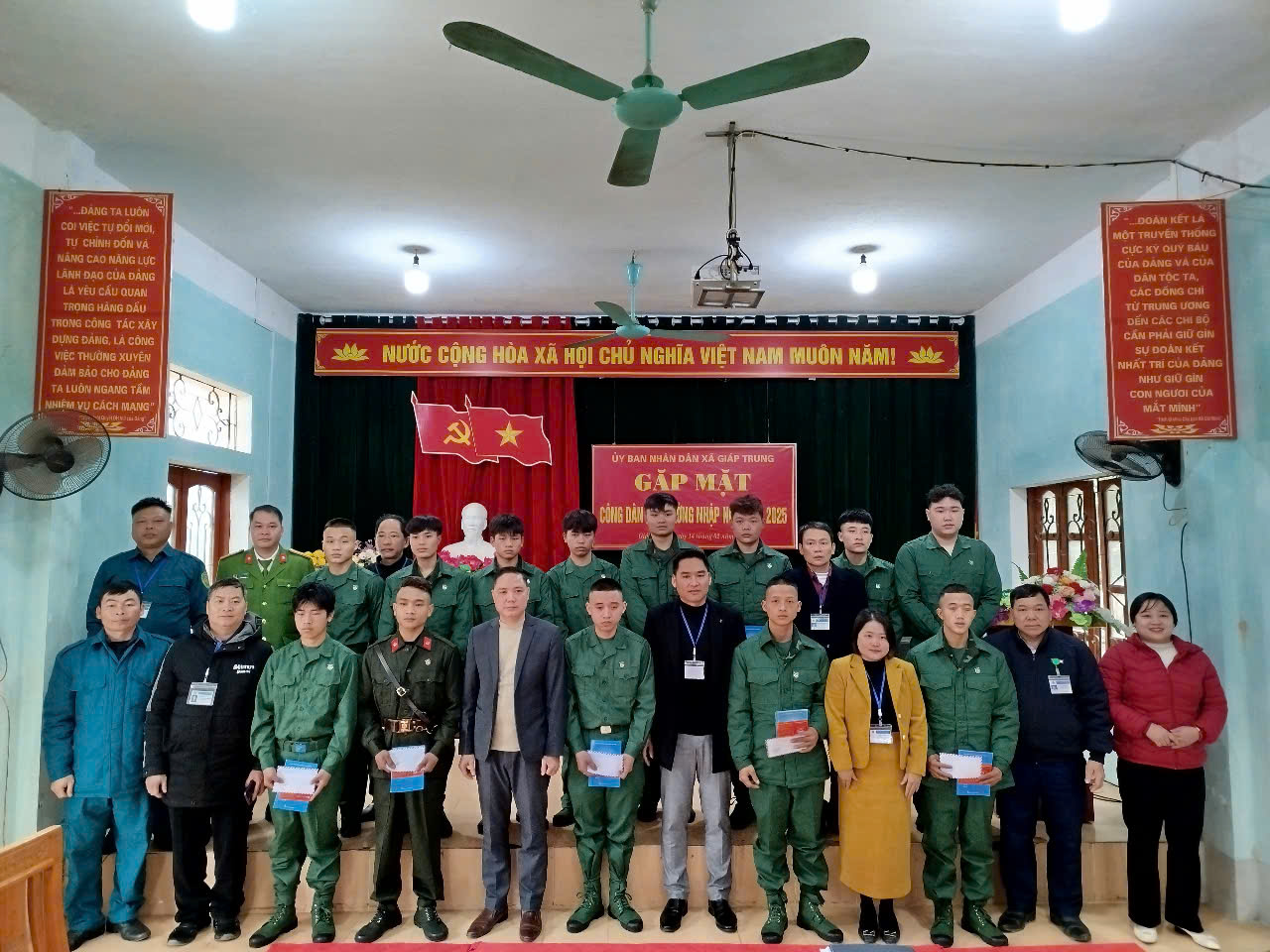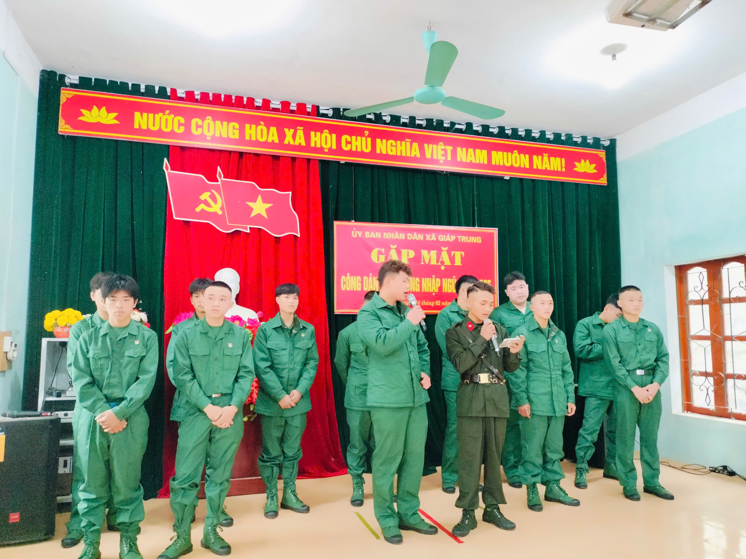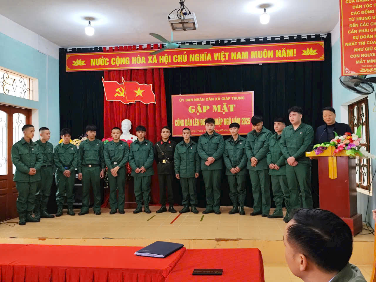 Năm 2025, xã Giáp Trung có 13 thanh niên trúng tuyển tham gia nghĩa vụ quân sự. Đây là những thanh niên ưu tú, tiêu biểu được Hội đồng nghĩa vụ quân sự xã tuyển chọn để tham gia nghĩa vụ quân sự và nghĩa vụ công an nhân dân năm 2025, trong đó: tham gia nghĩa vụ quân sự có 12 đồng chí, tham gia nghĩa vụ công an 01 đồng chí, có 01 đồng chí tham gia nghĩa vụ quân sự được kết nạp vào đảng tại chi bộ thôn Khâu Nhòa xã Giáp Trung con lại 12 đồng chí là đoàn viên thanh niên cộng sản Hồ Chí Minh.