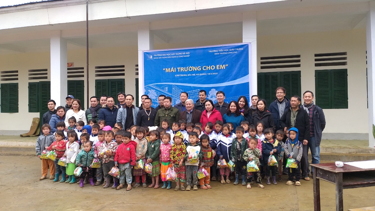 Ngày 18 tháng 02 năm 2023. Trường Đại học xây dựng Hà Nội, Khoa xây dựng Dân dụng và Công nghiệp đến thăm và tặng quà cho các cháu điểm trường thôn Lùng Cao Trường Tiểu học xã Giáp Trung huyện Bắc Mê. ( Tặng 10 hộp sách thư viện cho Trường Tiểu học và hỗ trợ sửa chữa điểm trường thôn Lùng Cao và đồ chơi sân trường với tổng số tiền 232.000.000 (Hai trăm ba mươi hai triệu đồng chẵn) Đến dự buổi trao quà có đồng chí Nguyễn Việt Bắc, Ngân hàng, phát triển Tỉnh Hà Giang, Tổ công tác tỉnh, phụ trách xã Giáp Trung, đồng chí Ma Văn Tỏe, Ủy viên Ban Thường vụ Huyện ủy, Phó chủ tịch Ủy ban nhân dân huyện, Tổ trưởng Tổ công tác xã Giáp Trung, đồng chí Đặng Văn Dâu – Phó bí thư, Chủ tịch Ủy ban nhân dân xã và đại diện Lãnh đạo Trường Tiểu học xã Giáp Trung.