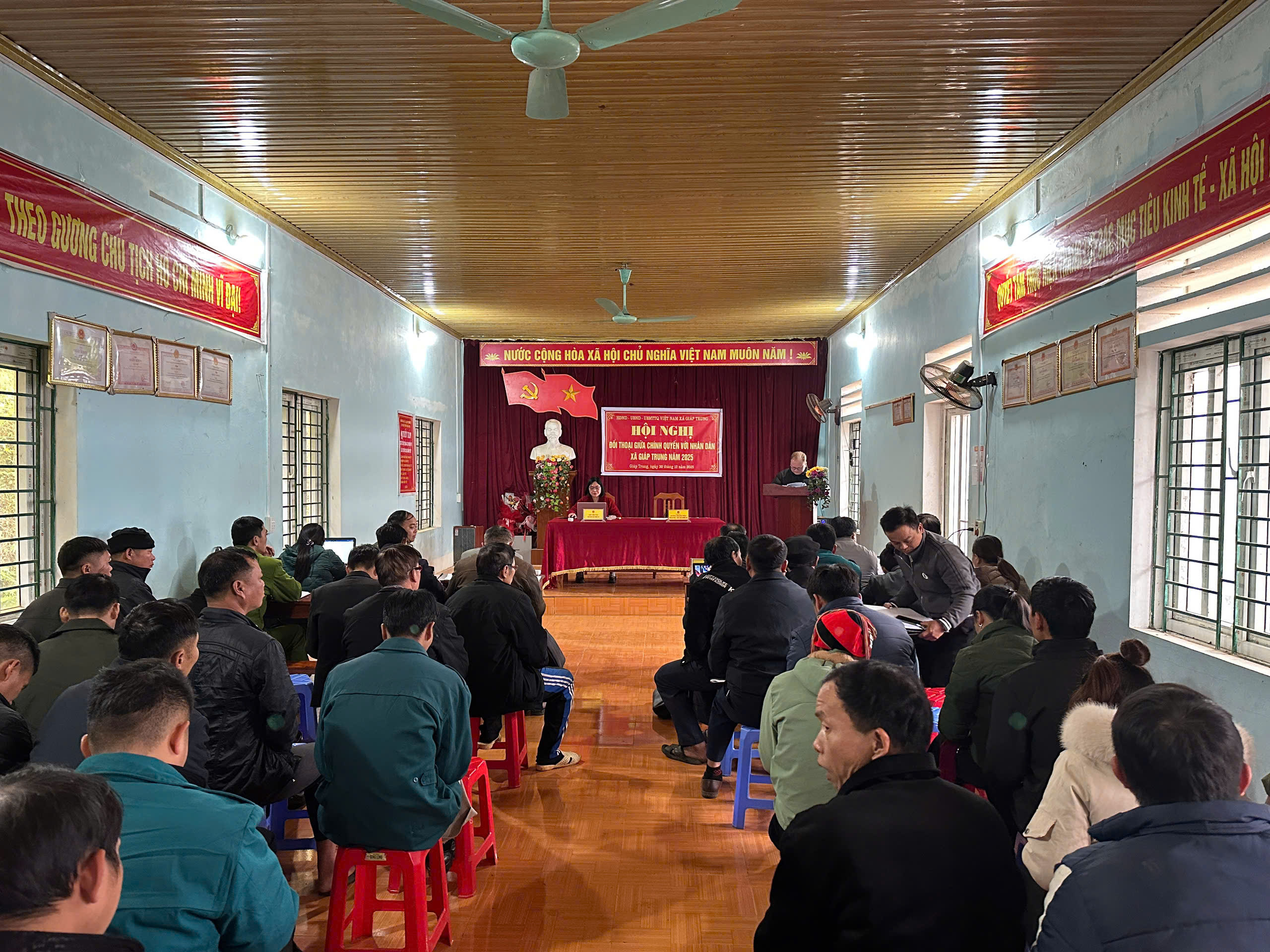 Ngày 30/12, Ủy ban nhân dân xã Giáp Trung tổ chức Hội nghị đối thoại trực tiếp giữa người đứng đầu chính quyền với nhân dân năm 2025. Đồng chí Dương Khánh Phúc, Phó Bí thư Đảng ủy, Chủ tịch UBND xã và đồng chí Chu Thị Vân, Phó Chủ tịch HĐND xã đồng chủ trì Hội nghị. Cùng dự có đồng chí Trương Thị Xuân, Ủy viên Ban Thường vụ Đảng ủy, Chủ tịch Ủy ban MTTQ Việt Nam xã; đồng chí Nông Thanh Phúc, Phó Chủ tịch UBND xã; lãnh đạo Công an xã, các phòng chuyên môn của xã; Bí thư chi bộ; Trưởng thôn; Trưởng Ban công tác Mặt trận và đại diện nhân dân các thôn trên địa bàn xã. Tại hội nghị, người dân phát biểu nhiều ý kiến, kiến nghị tập trung vào các vấn đề như: việc cấp giấy chứng nhận quyền sử dụng đất cho các hộ dân; đầu tư nâng cấp, sửa chữa các tuyến đường giao thông liên thôn, nội thôn bị hư hỏng do thiên tai, xây dựng nông thôn mới; kéo điện lưới quốc gia cho các hộ dân hiện nay chưa có điện; nâng cấp, sửa chữa công trình thủy lợi đảm bảo đủ nước tưới tiêu cho sản xuất; kinh phí hỗ trợ cho các hộ dân xóa nhà tạm, nhà dột nát; chế độ phụ cấp hoạt động của các Hội đoàn thể ở thôn.... Tại Hội nghị đối thoại lãnh đạo UBND xã trực tiếp lắng nghe tâm tư, nguyện vọng, ý kiến, kiến nghị của nhân dân và giải trình cụ thể từng ý kiến của nhân dân thuộc thẩm quyền; chỉ đạo các phòng chuyên môn, bộ phận liên quan khẩn trương xem xét, giải quyết những nội dung còn vướng mắc. Đối với những vấn đề vượt thẩm quyền, UBND xã tiếp thu, tổng hợp, báo cáo cấp có thẩm quyền xem xét, giải quyết và trả lời cho nhân dân. Hoạt động đối thoại trực tiếp giữa người đứng đầu chính quyền xã với nhân dân là dịp quan trọng để tăng cường mối quan hệ mật thiết giữa chính quyền và nhân dân; củng cố niềm tin, phát huy dân chủ, tạo sự đồng thuận trong quá trình thực hiện các chủ trương, chính sách tại địa phương. Góp phần nâng cao chất lượng phục
