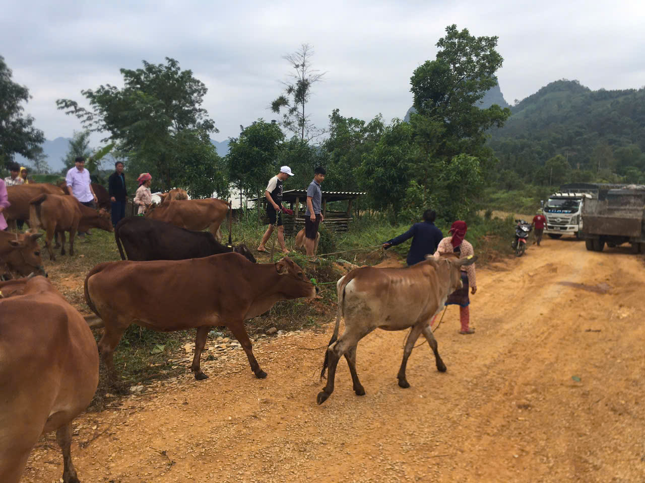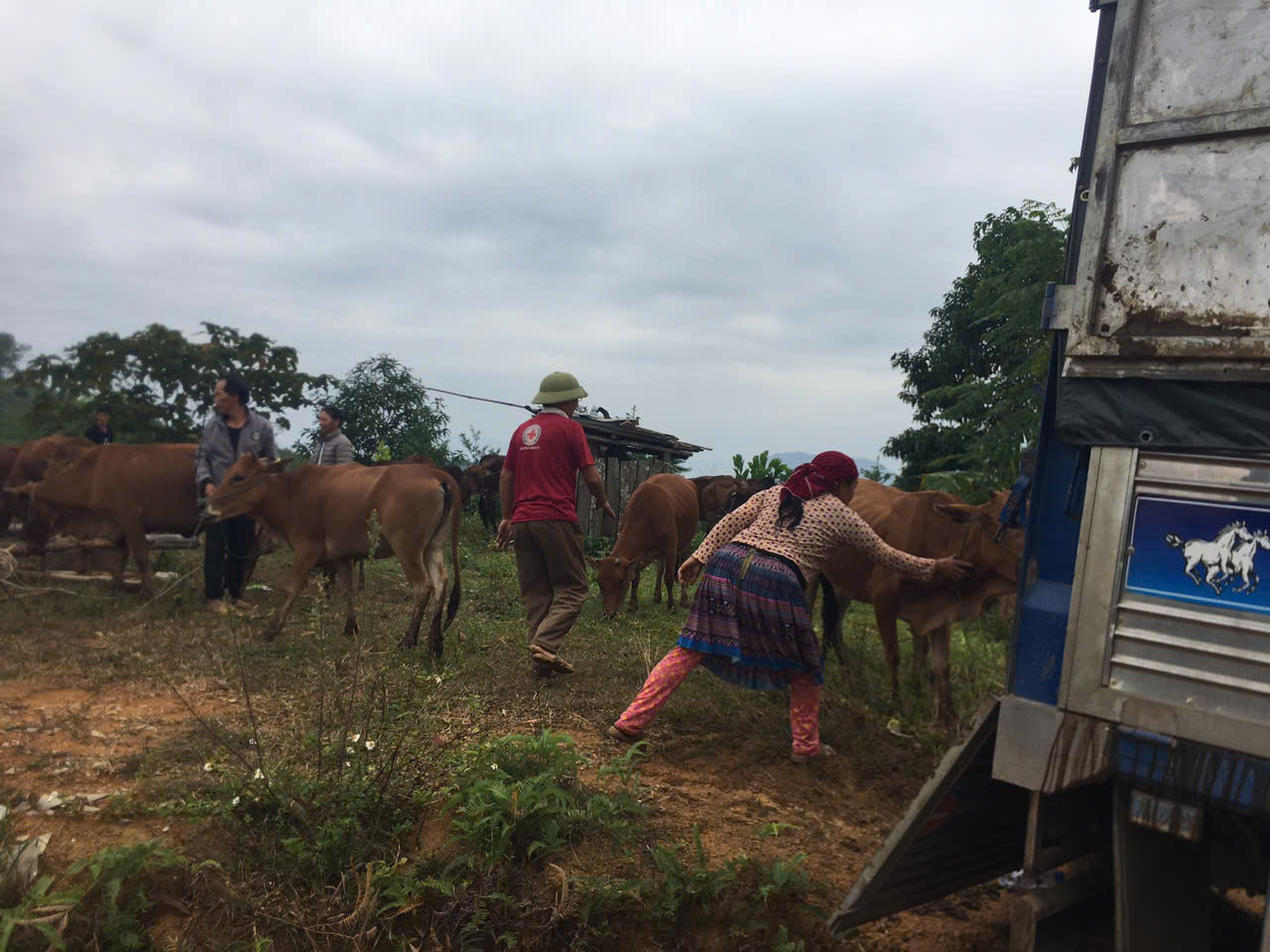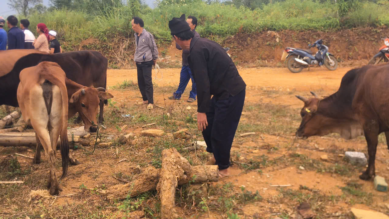 ngày 10/10/2024 bà con nhân dân thôn lùng cao nhận bò thuộc 03 chương trình mục tiêu quốc gia giảm nghèo bền vững