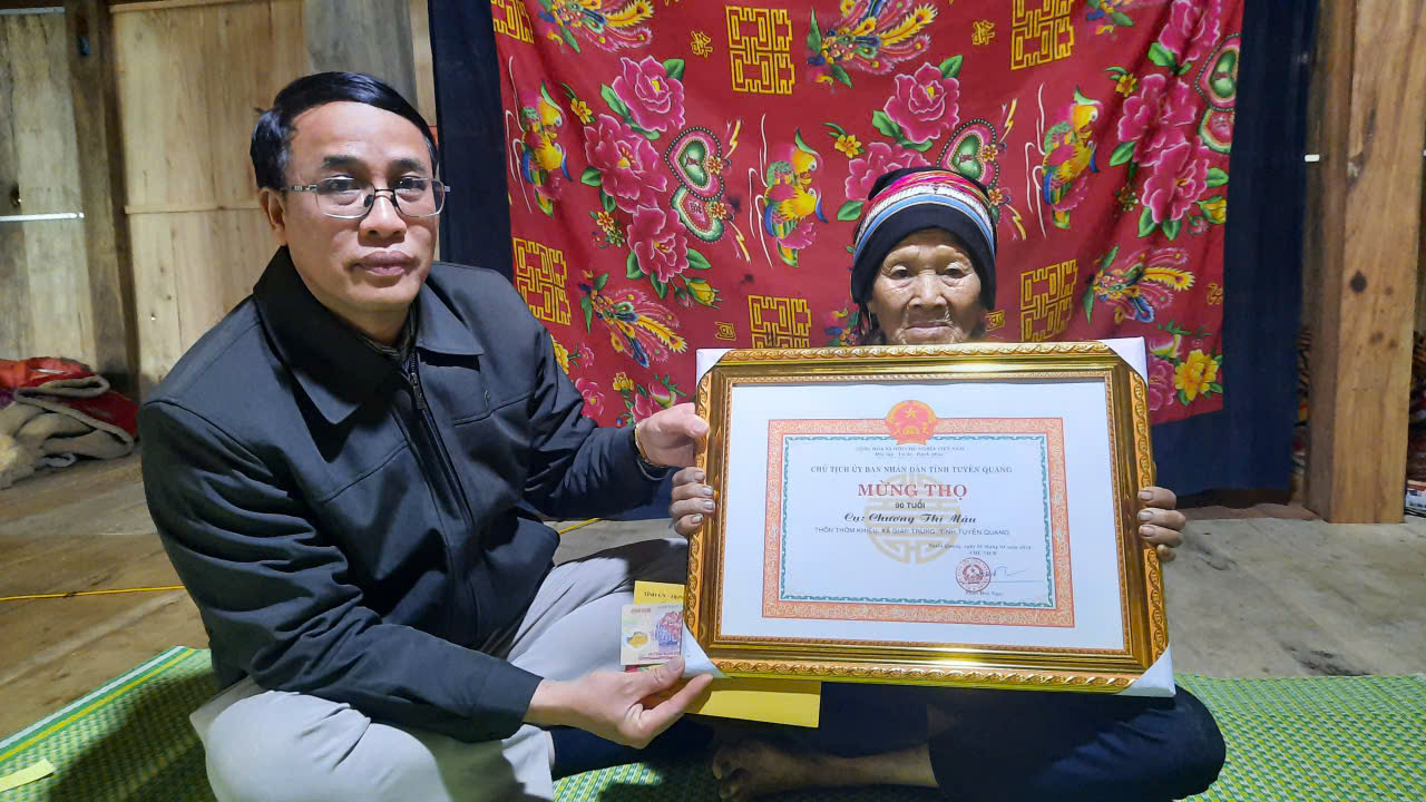 Phó Bí thư Thường trực Đảng ủy xã Vũ Văn Hường đã đến thăm và trao quà của Tỉnh ủy, HĐND, UBND, Ủy ban MTTQ Việt Nam tỉnh Tuyên Quang cho cụ Chương Thị Mậu, 90 tuổi ở thôn Thôm Khiêu, xã Giáp Trung. Tại gia đình, đồng chí Phó Bí thư Thường trực Đảng ủy đã ân cần thăm hỏi sức khỏe, đời sống sinh hoạt, chúc cụ cao tuổi luôn sống vui, sống khỏe, sống có ích, tiếp tục là tấm gương sáng cho con cháu noi theo. Đồng thời chúc cụ cao tuổi và gia đình đón Tết vui tươi, đầm ấm.