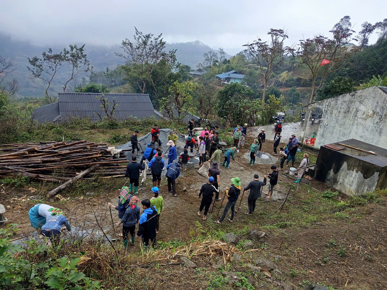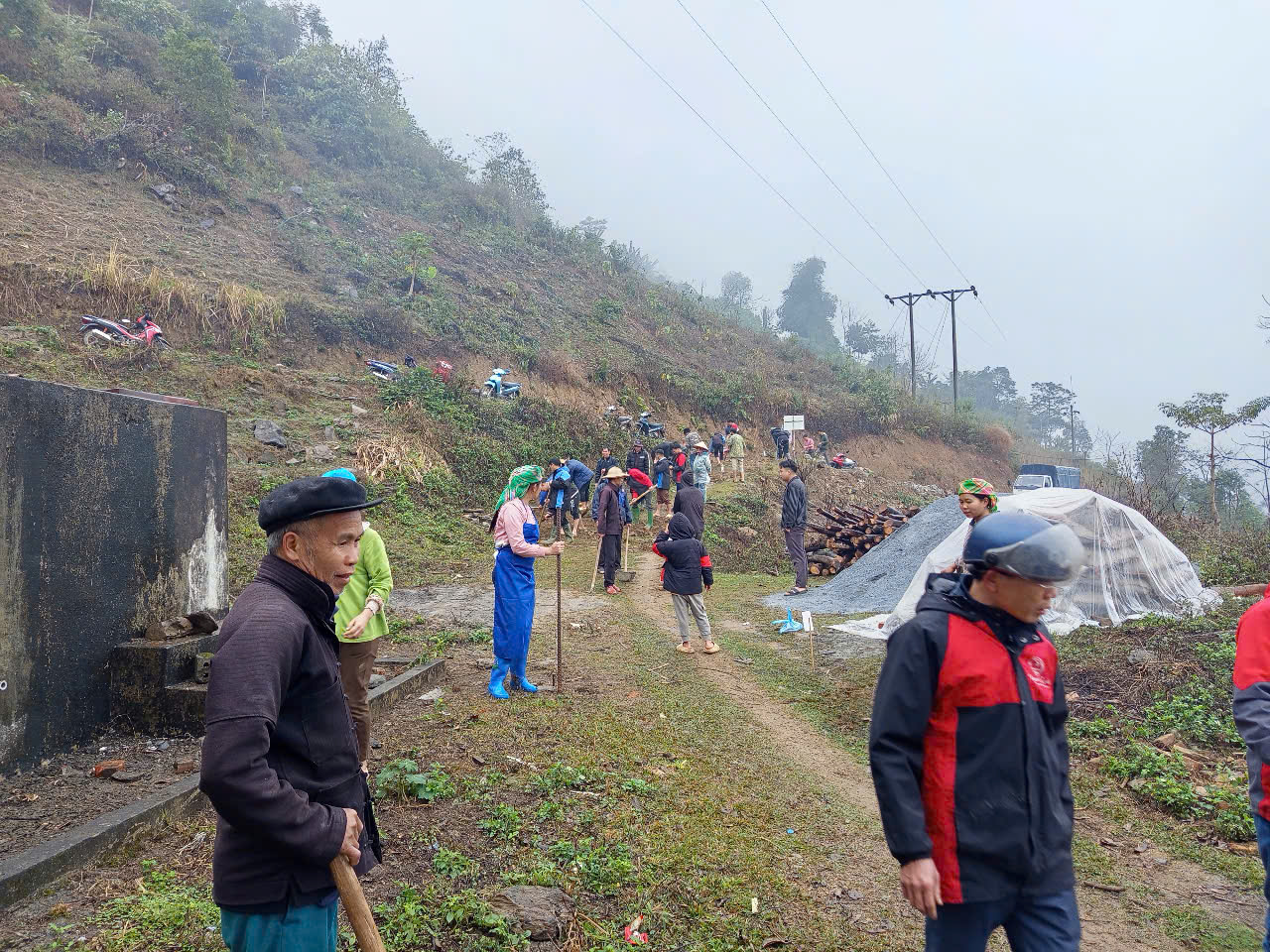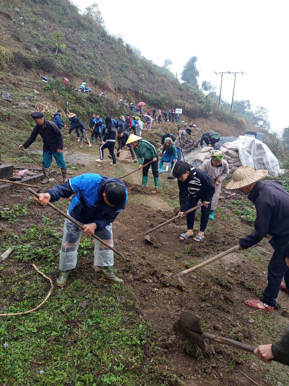 20 °C Ra quân đổ đường bê tông chào mừng đại hội điểm chi bộ thôn Nà Đén