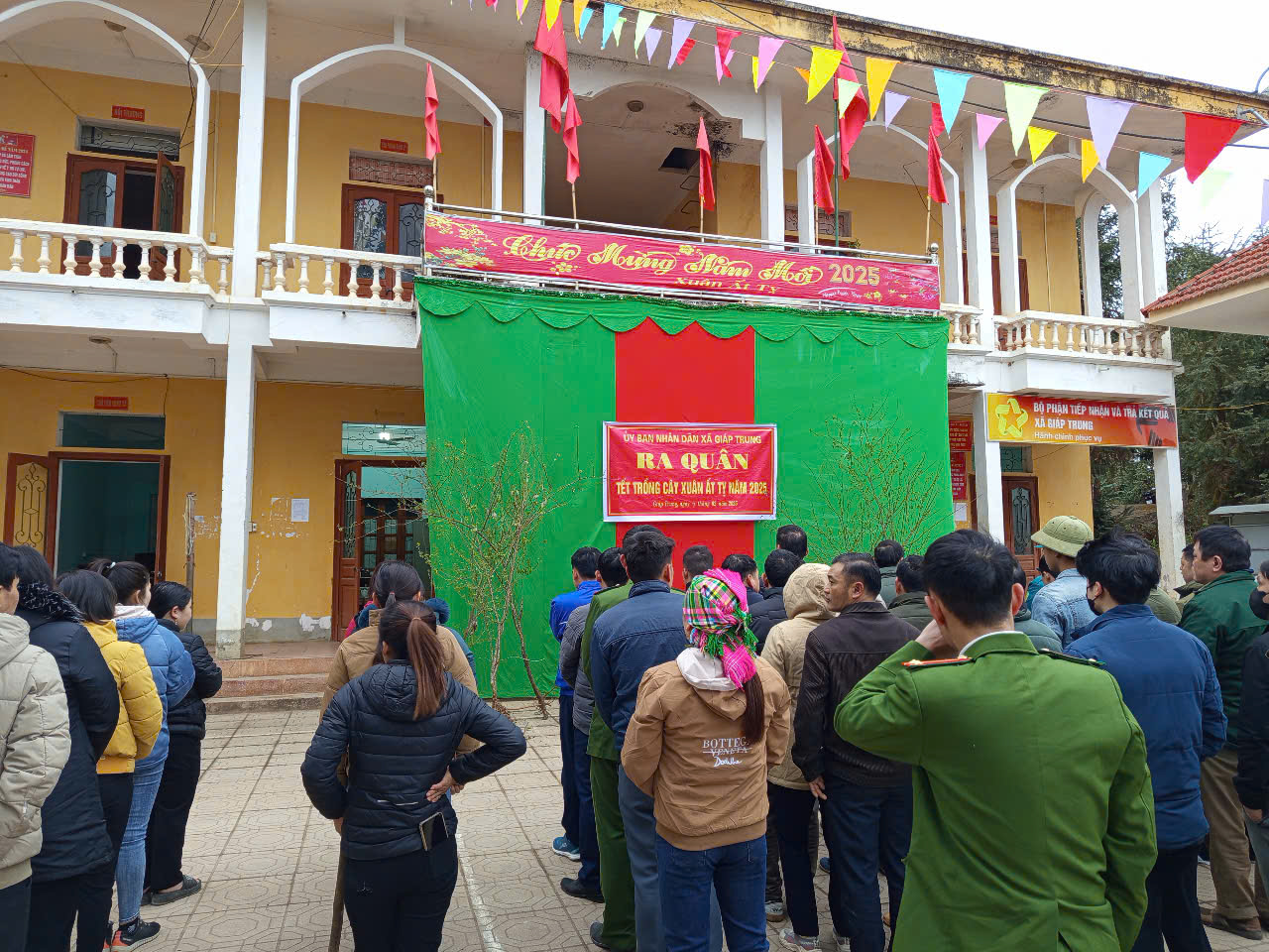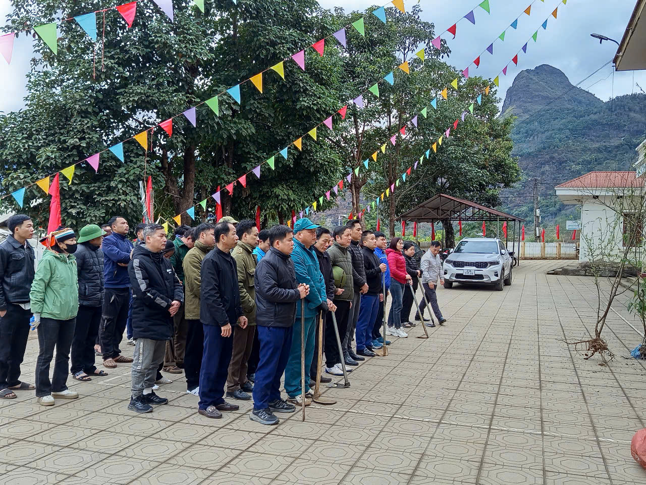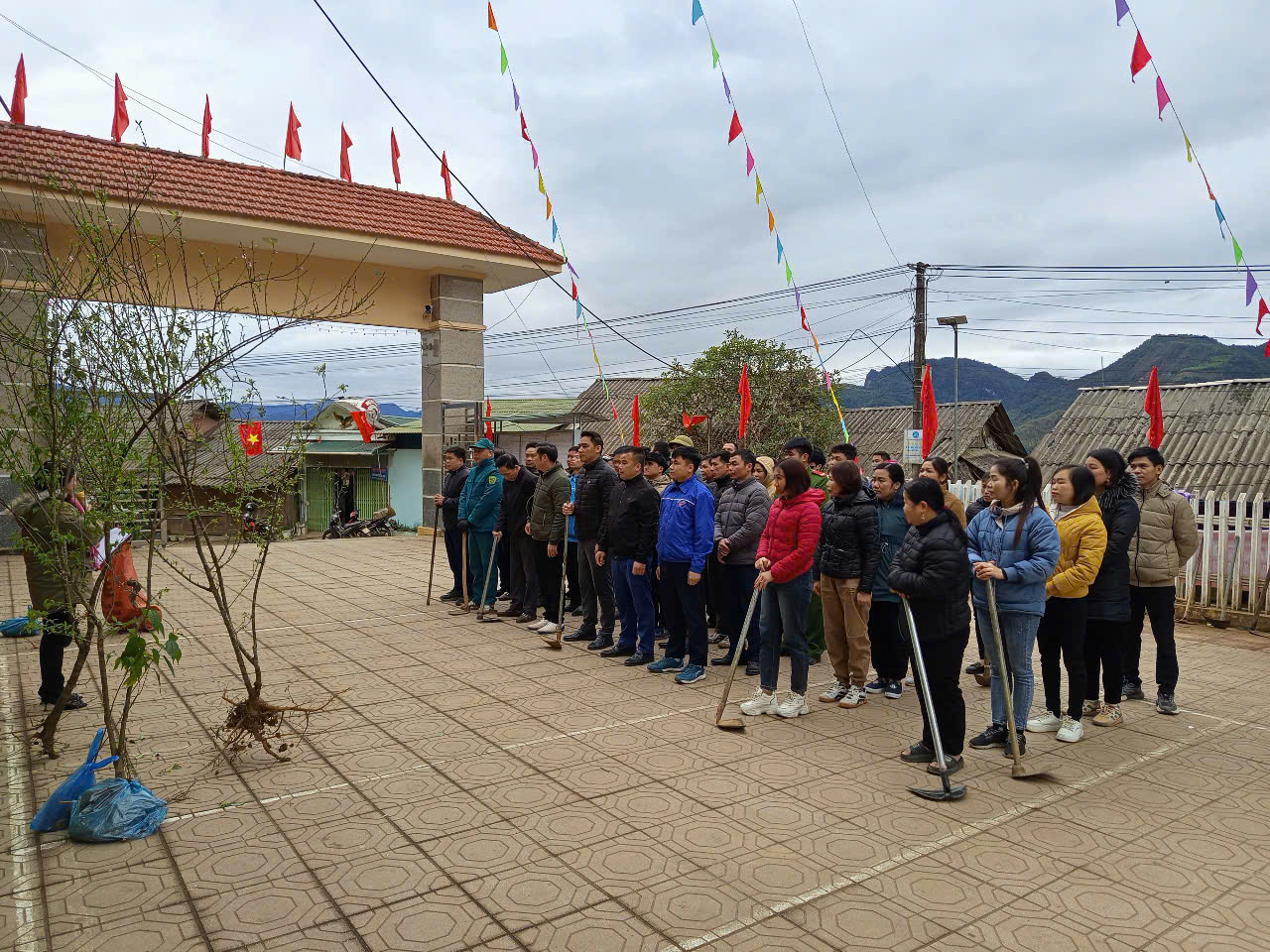 ngày 10/02/2025 TTr.Đảng ủy-HĐND-UBND-UBMTTQ cán bộ,công chức,không chuyên trách 3 trường học, trạm y tế,nhân dân thôn khâu nhòa, bó lóa tổ chức ra quân tết trồng cây xuân ất tỵ năm 2025 trong đó trồng cây đào,mận và các loai giống cây khác dọc tuyến từ điểm trường nậm tinh đến trung tâm UBND xã với số lượng người tham gia được 90 người tham gia được 80 cây buổi lễ ra quân thành công tốt đẹp