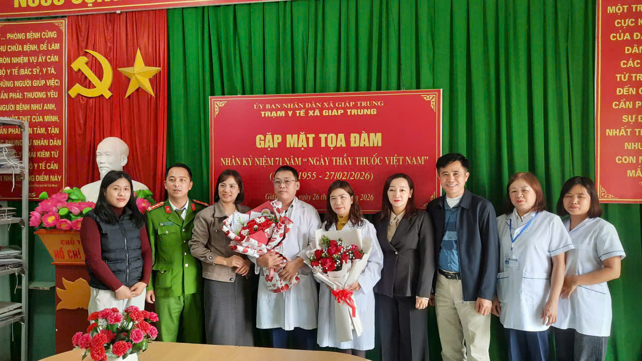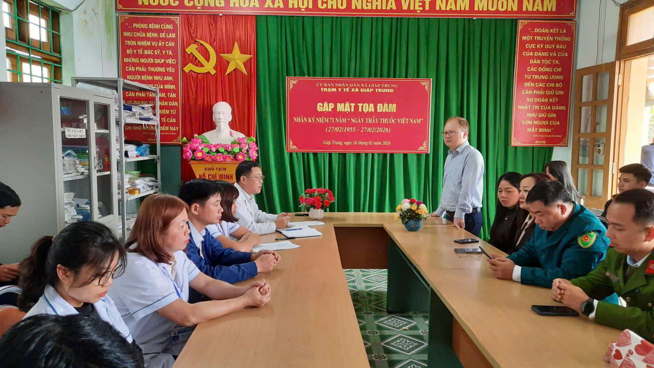 Sáng ngày 26/2/2026, Trạm y tế xã Giáp Trung tổ chức buổi Toạ đàm kỷ niệm 71 năm ngày thầy thuốc Việt Nam (27/2/1955 - 27/2/2026). Dự buổi tọa đàm có đồng chí Dương Khánh Phúc, Phó Bí thư Đảng ủy, Chủ tịch UBND xã; lãnh đạo ban xây dựng Đảng, Ủy ban kiểm tra Đảng ủy; Ủy ban MTTQ và các đoàn thể xã; lãnh đạo các cơ quan, đơn vị cùng toàn thể cán bộ, nhân viên Trạm y tế xã.
