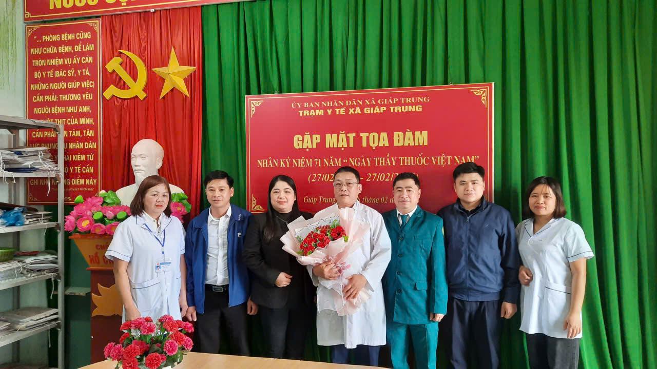 Cũng trong dip này, lãnh đạo các cơ quan, ban ngành đã đến tặng hoa chúc mừng Trạm y tế xã Giáp Trung nhân dịp kỷ niêm 71 năm Ngày thầy thuốc Việt Nam 27/2/1955 – 27/2/2026.